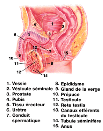 Le système de reproduction masculin est composé de trois parties principales :